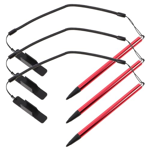 OUNONA 3PCS Universal Touch Screen Stylus Pens Spring Rope and Base, Resistive Handwriting Touch Pen for Smartphones, Tablets, and Painting Pads, Red