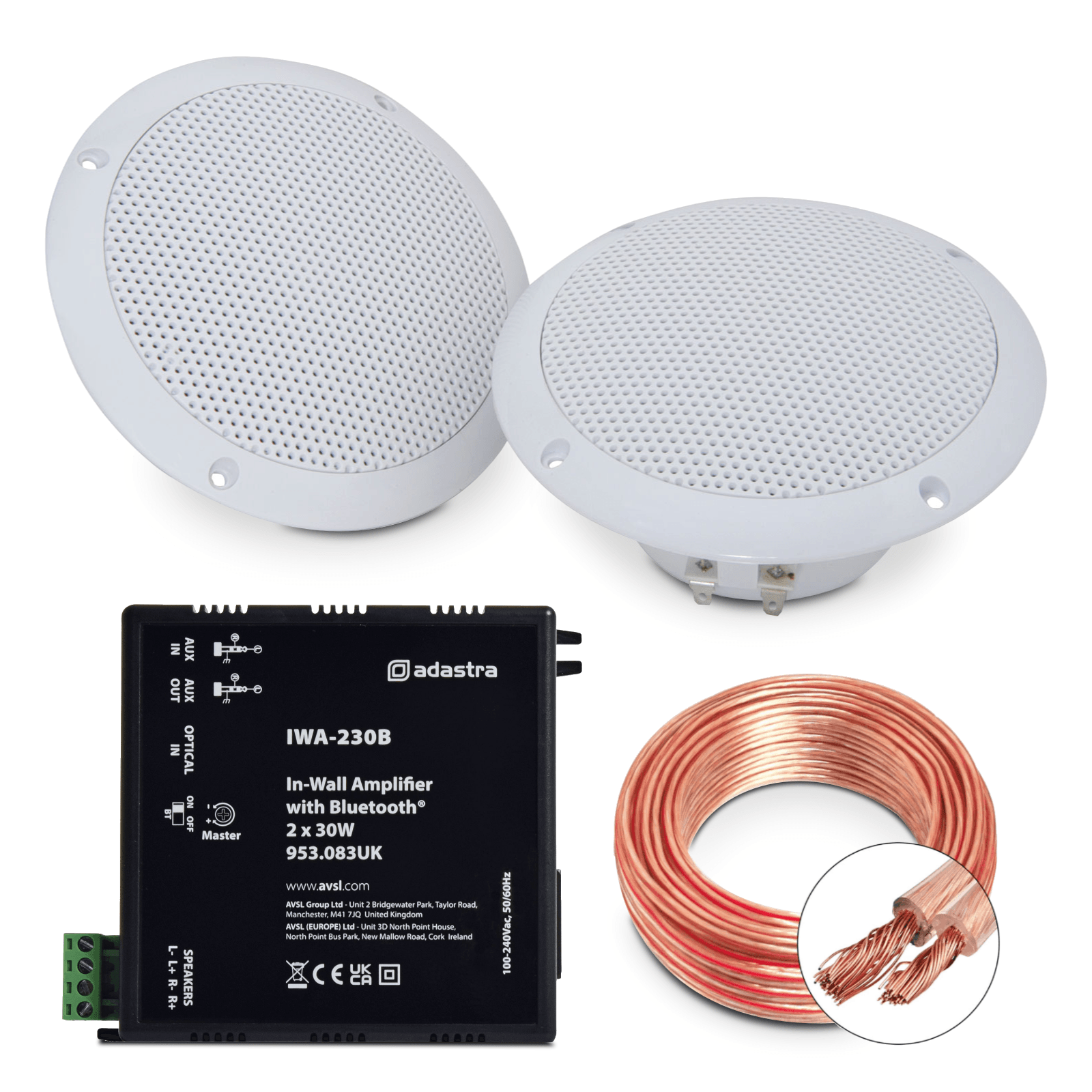 Adastra Bluetooth Bathroom Music System + Water-Resistant Ceiling Speakers, Pair