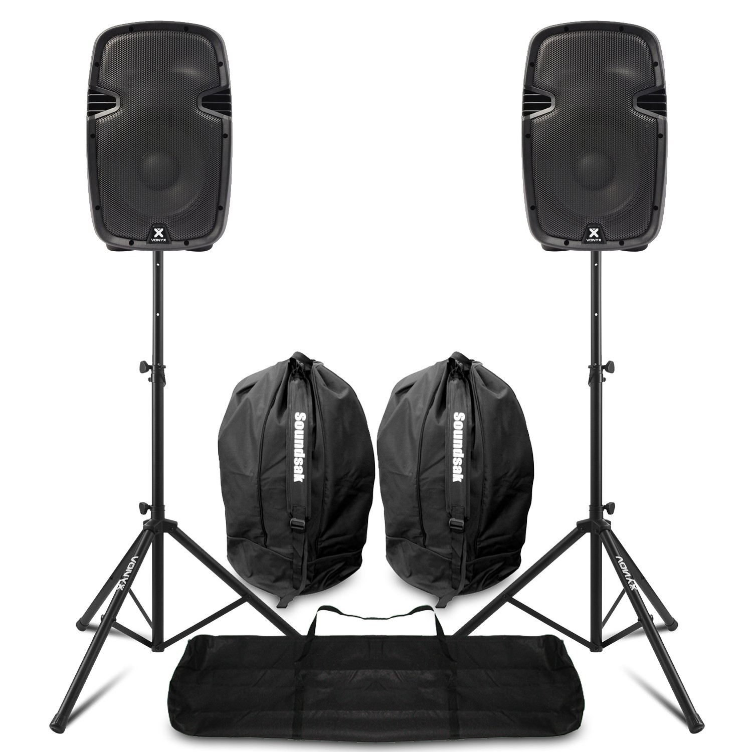 Pair of Vonyx VSA10BT Bluetooth Active PA Speakers Package with Stands