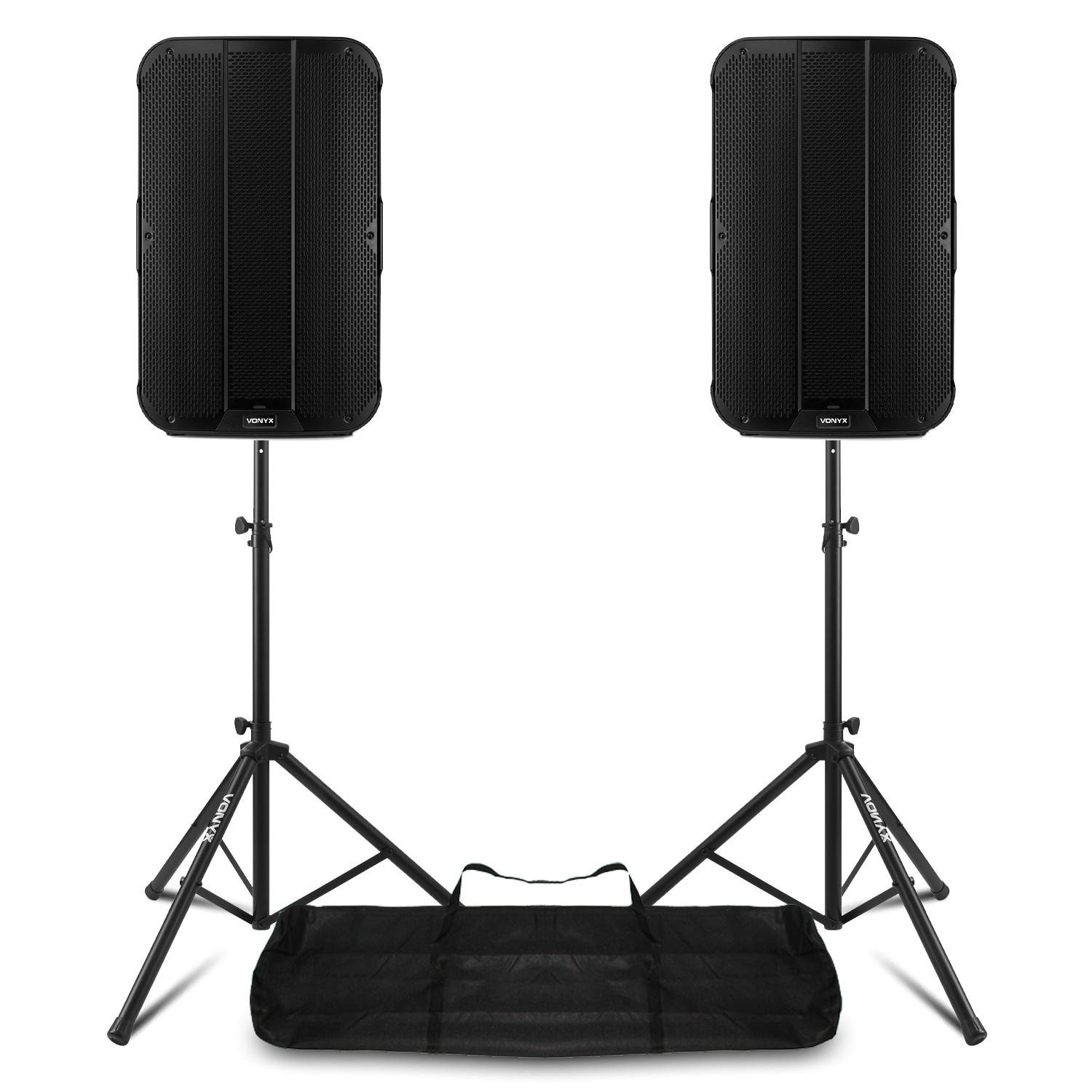 Pair 10" Active Bluetooth PA Speakers with Stands and Bags - Vonyx SPJ-1000ABT