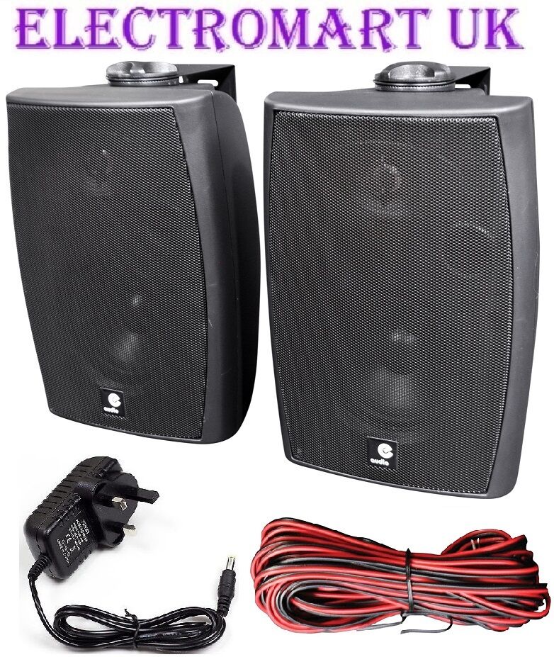 120W PAIR STEREO ACTIVE WALL MOUNT BLUETOOTH SPEAKERS AUXILIARY INPUT BLACK