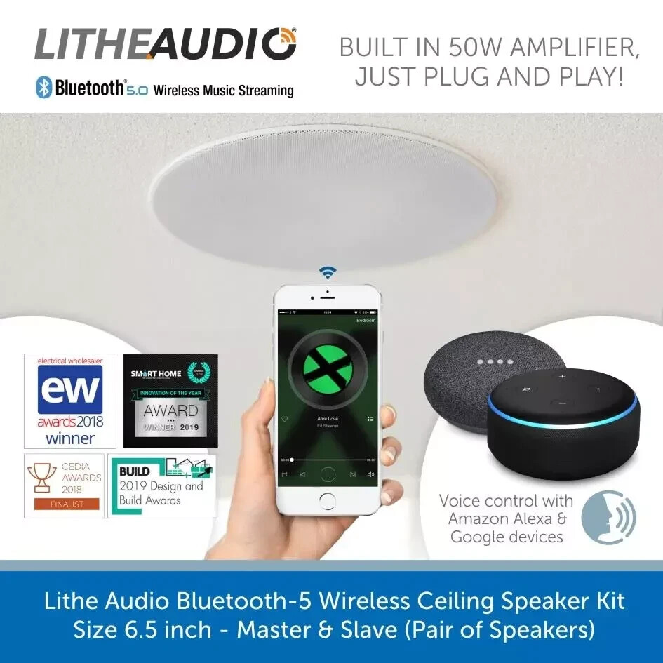 Lithe Audio 03201 6.5" Wireless Bluetooth Ceiling Speakers Active APTX (Pair)
