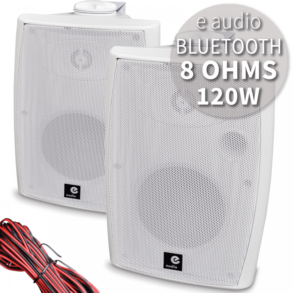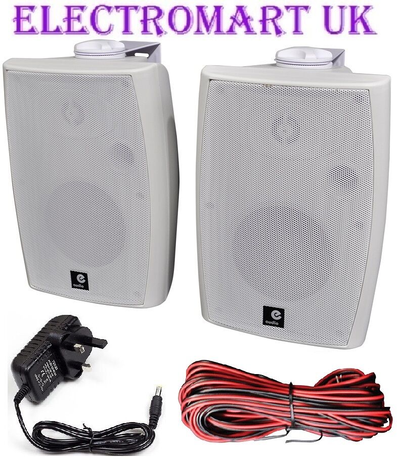 120W PAIR STEREO ACTIVE WALL MOUNT BLUETOOTH SPEAKERS AUXILIARY INPUT WHITE