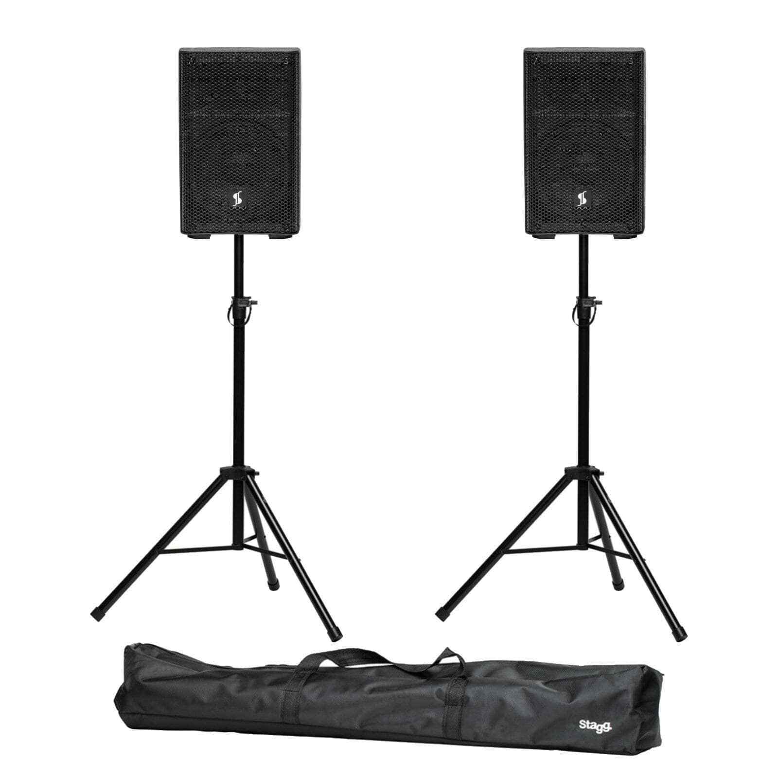 Pair of Stagg AS8 8" Active Bluetooth PA Speakers with Stands & Bags