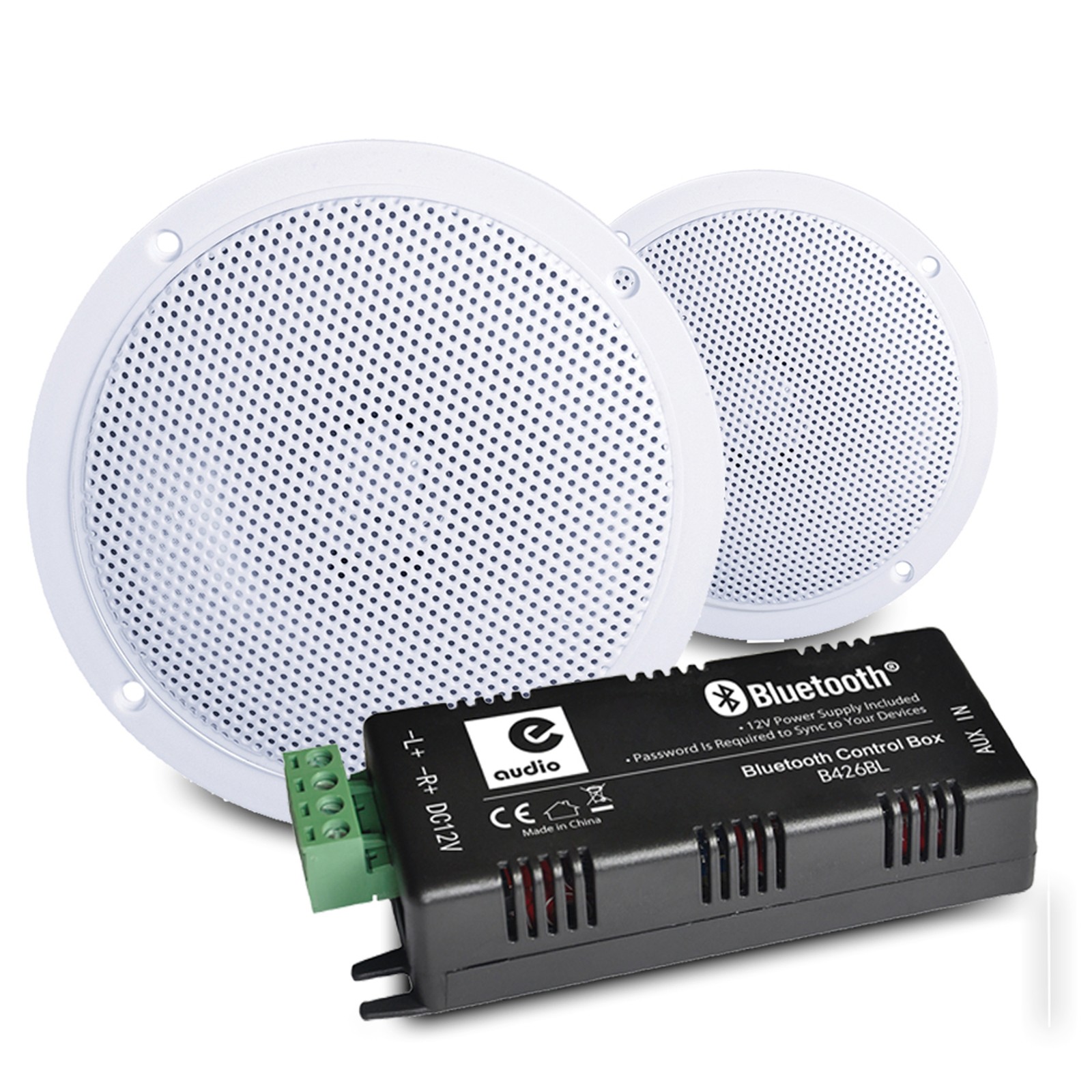 E-Audio B300A Waterproof Ceiling Speakers Pair with Bluetooth Amplifier