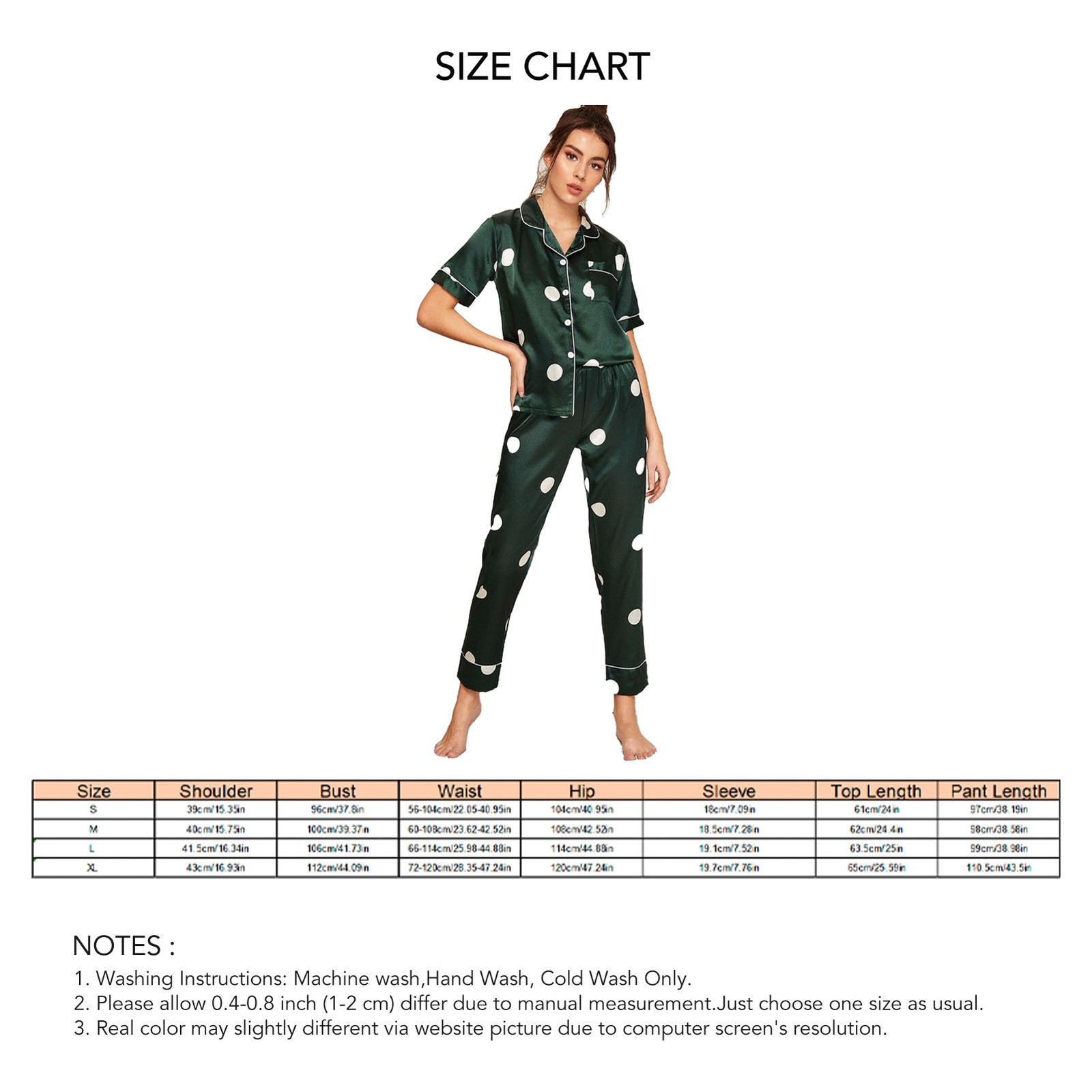 Women Two Piece Pajamas Silky Short Sleeve Top Pant Set V Neck Button Down