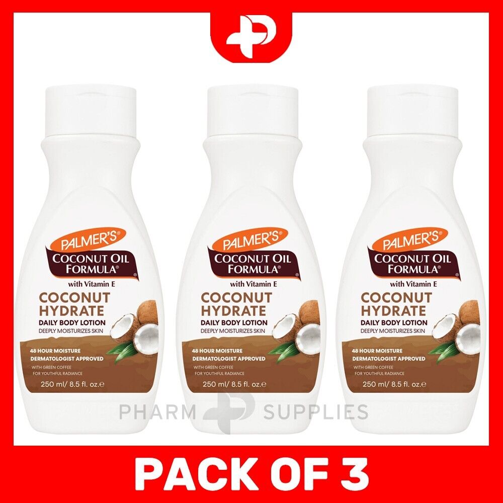 Palmers Coconut Oil Hydrate Daily Body Lotion Vitamin E Skin Care 250ml 3 Packs