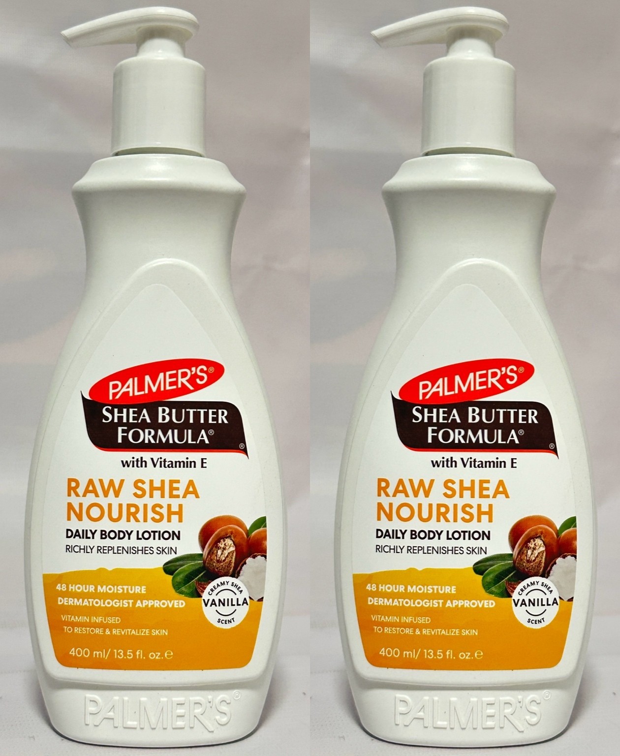 2 X Palmers Raw Shea Butter Formula with Vitamin E Body Lotion With Pump 400ml