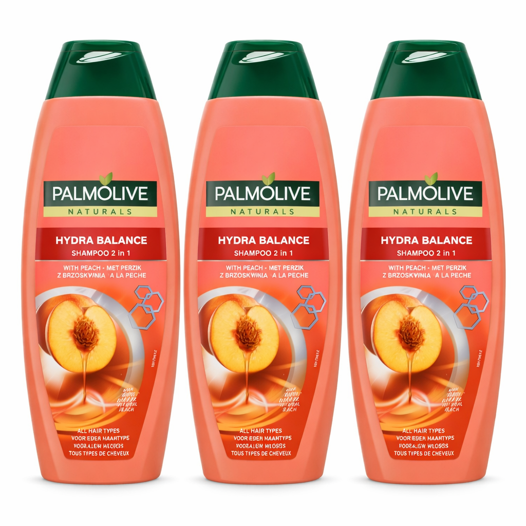 3 x Palmolive Naturals Hydra Balance Shampoo 2-in-1 Peach Extract All Hair Types