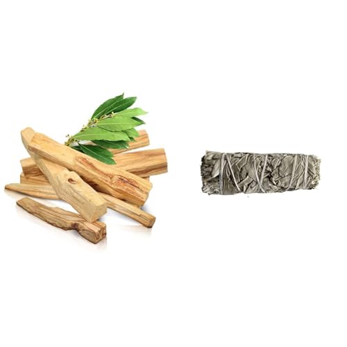 2x White Sage 4" Smudge Sticks & PORTENTUM Natural Palo Santo Incense - 50 gr. (1.76 ounces 4-7 pcs.) Origin Peru - Sacred Wood for Burning, Authentic Palosanto, Palo Santo Incense in Premium Pack