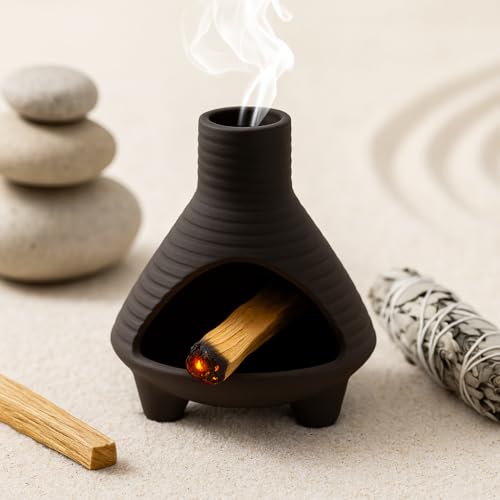 Mini Ceramic Chimenea Incense Burner for Wood, Palo Santo, Sage, and Cones – Handmade Clay Ash Catcher for Meditation, Yoga, Aromatherapy – Heat-Resistant, Easy to Clean, Decorative Zen Smudge Bowl
