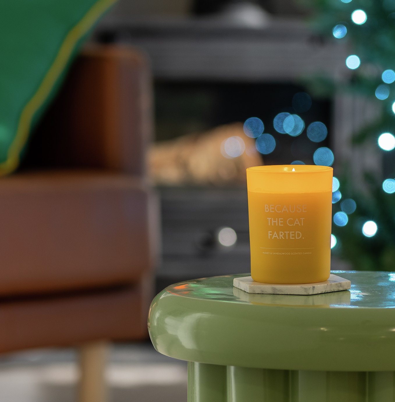 Argos Home Small Cat Slogan Candle - Palo Santo & Sandalwood
