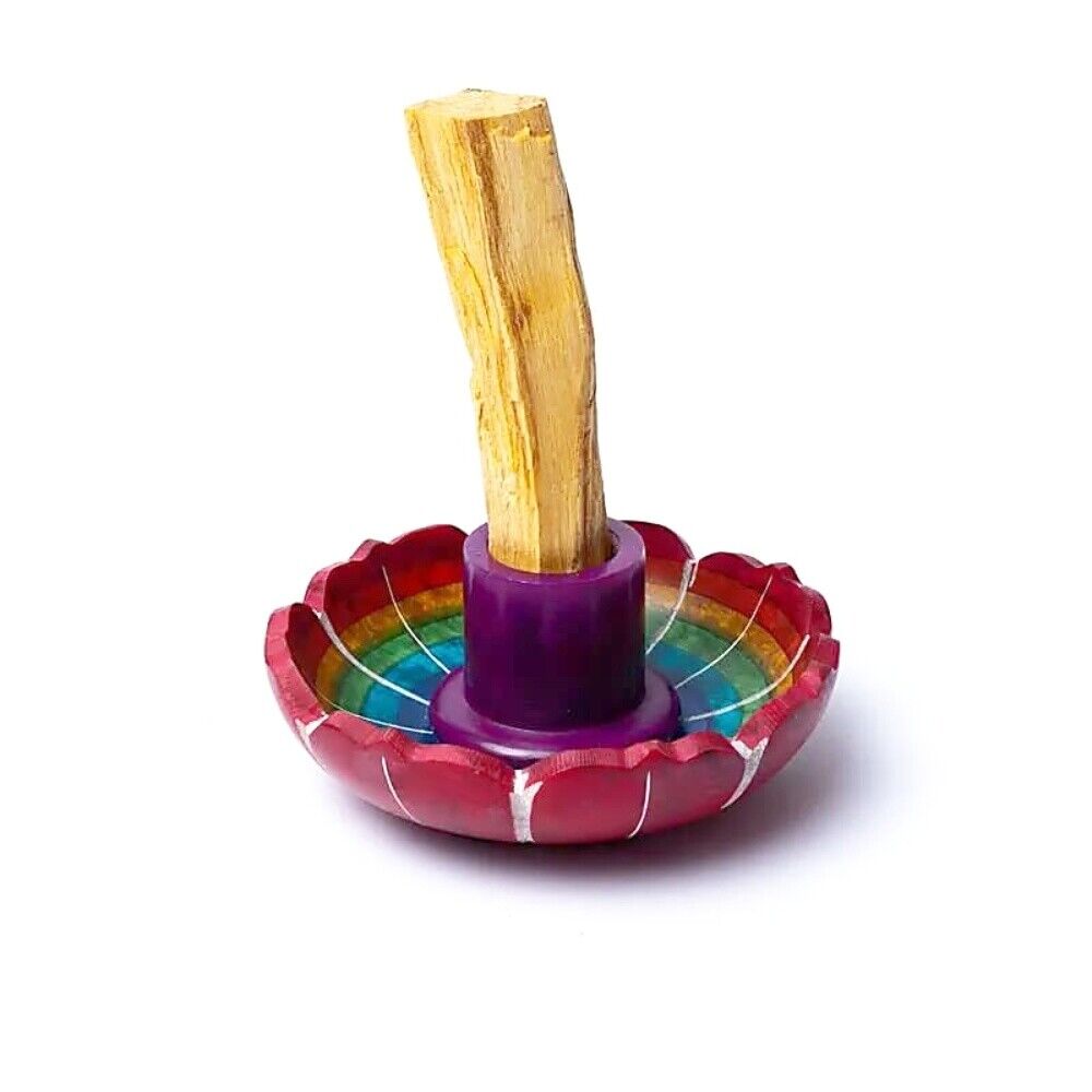 Palo Santo Incense Holder 12.5cm - Lotus Rainbow Colour Smudge Stick Holder