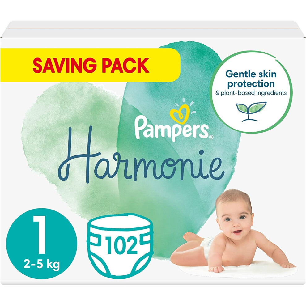 Pampers Baby Nappies Size 1 (2-5 kg / 4-11 lbs), Harmonie, 102 Nappies, SAVING PACK, Baby Essentials For Newborn