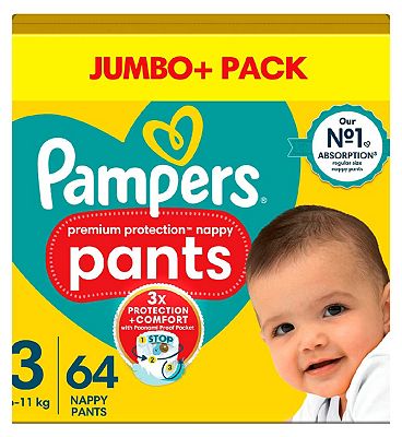 Pampers Premium Protection Nappy Pants Size 3, 64 Nappies, 6kg-11kg