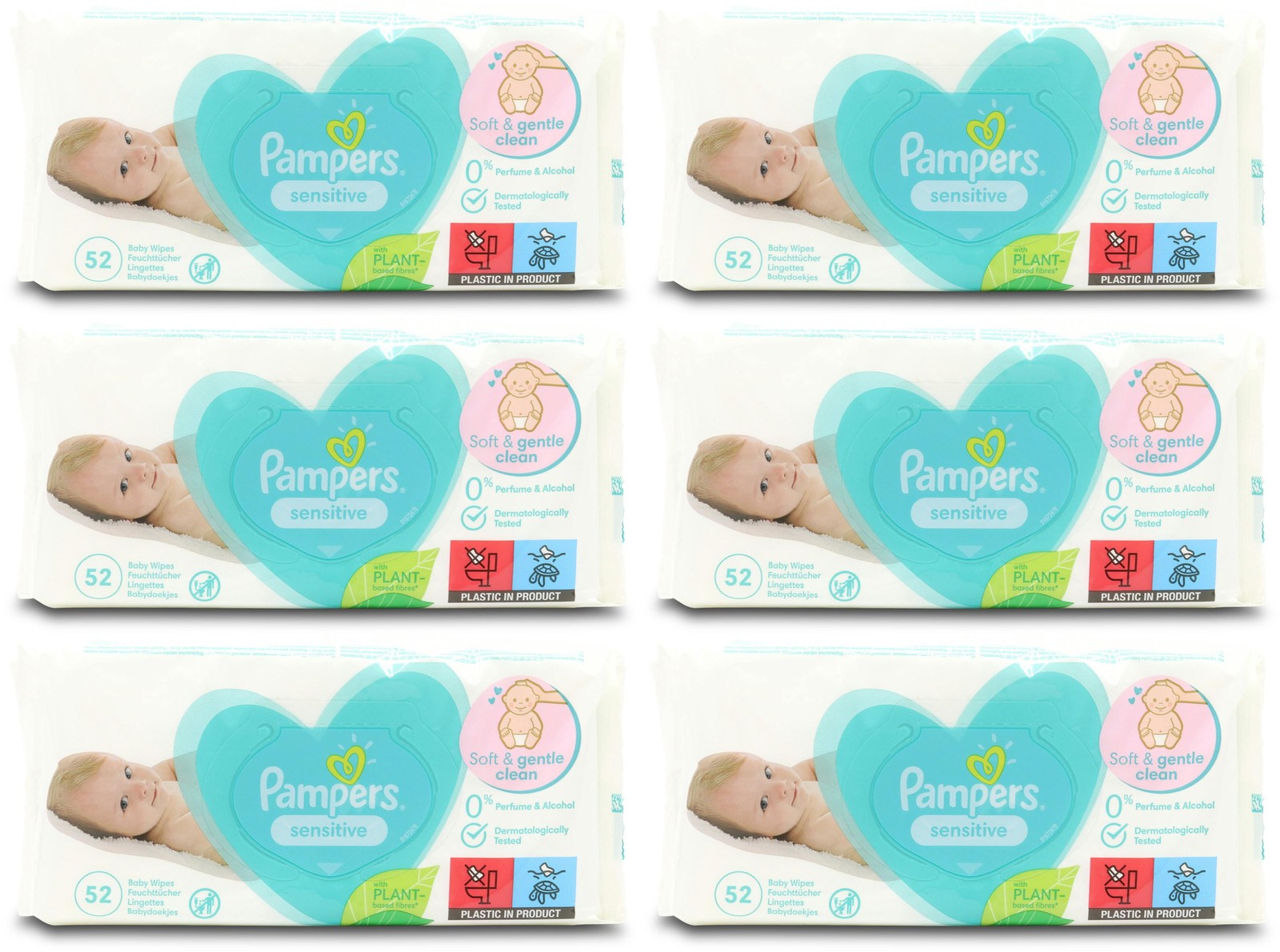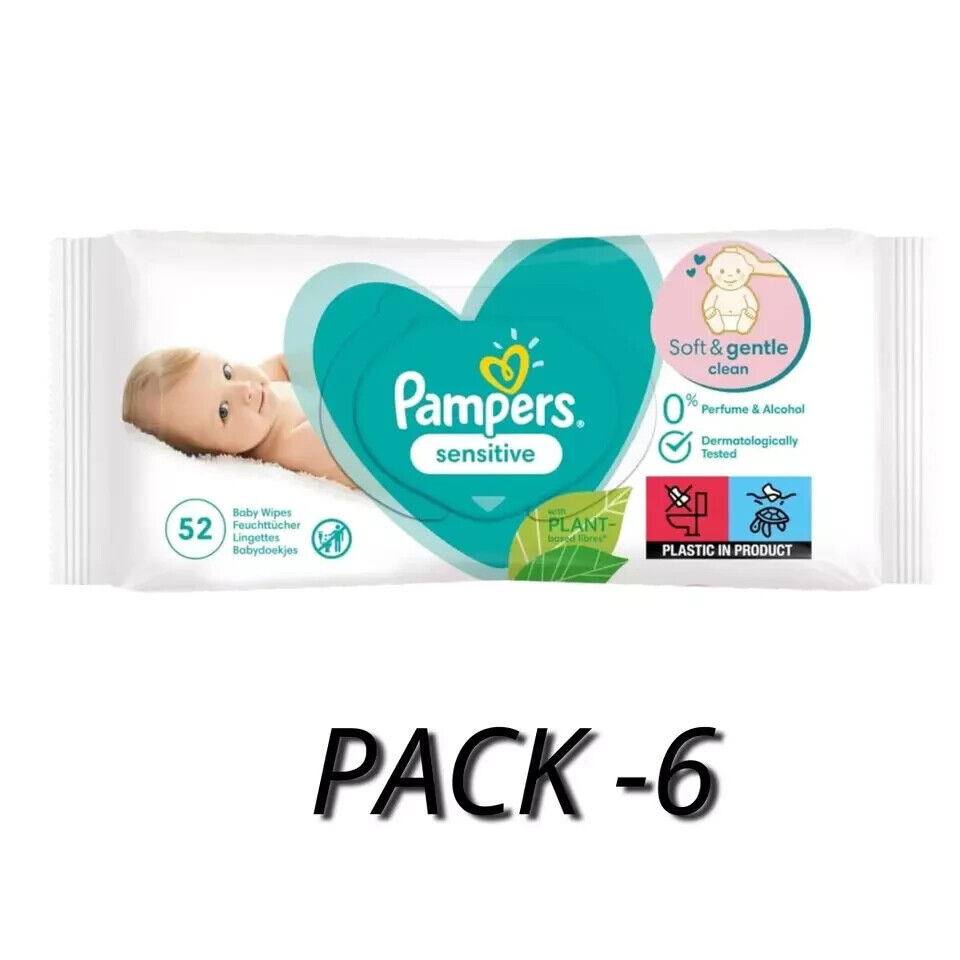 Pampers Sensitive Fragrance Free 52 Baby Wipes X 6