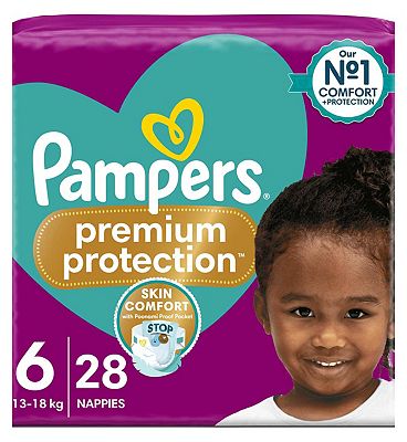Pampers Premium Protection Size 6, 28 Nappies, 13kg+, Essential Pack