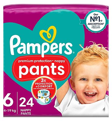 Pampers Premium Protection Nappy Pants Size 6, 24 Nappies, 15kg+, Essential Pack