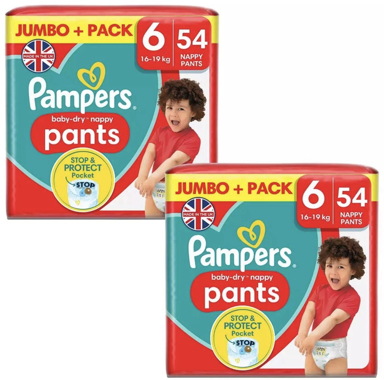 Pampers Baby Dry Nappy Size 6 Diaper Protect Pants 15+kg Jumbo+Pack 2x54 Nappies