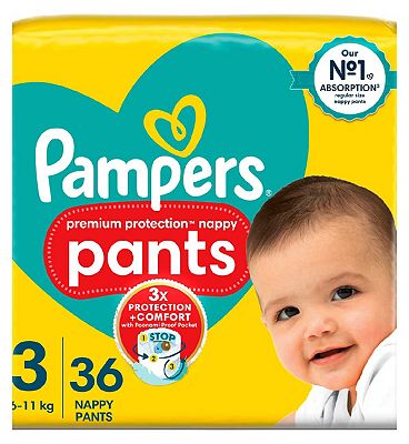 Pampers Premium Protection Nappy Pants Size 3, 36 Nappies, 6kg-11kg