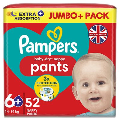 Pampers Baby-Dry Nappy Pants Size 6+, 52 Nappies, 14kg-19kg, Jumbo+ Pack