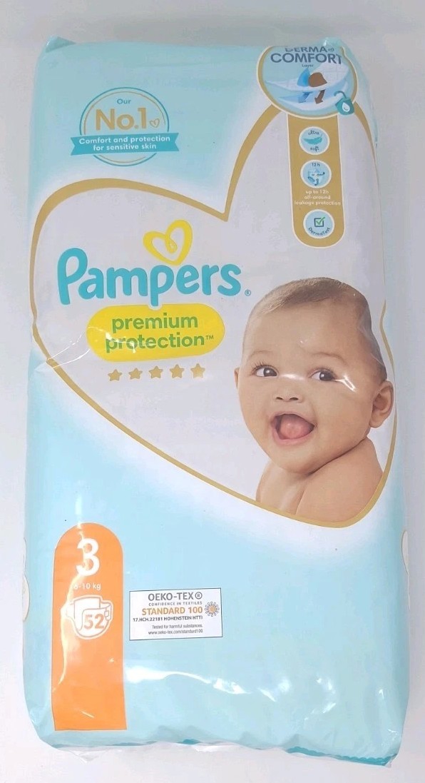 Pampers Premium Protection Baby Nappies - Size 3, 52 Pack (6-10 Kg / 13-22 Lbs)