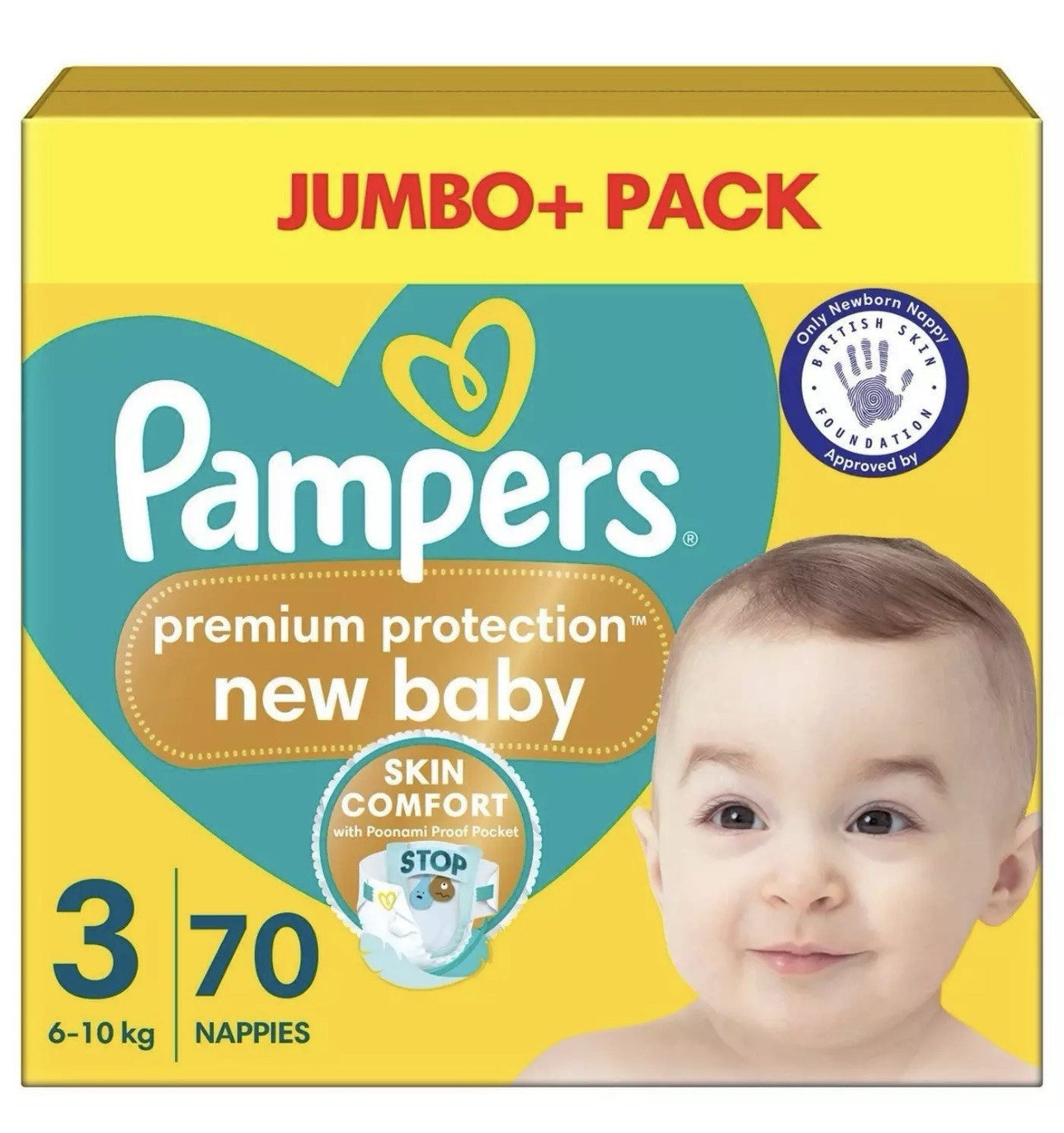 Pampers Premium Protection New Baby Size 3, 70 Nappies, 6kg - 10kg, Jumbo+ Pack