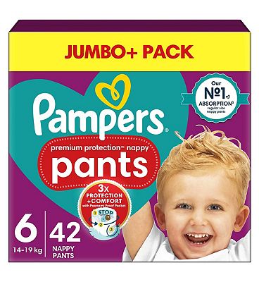 Pampers Premium Protection Nappy Pants Size 6, 42 Nappies, 15kg+, Jumbo+ Pack