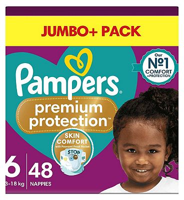 Pampers Premium Protection Size 6, 48 Nappies, 13kg+, Jumbo+ Pack