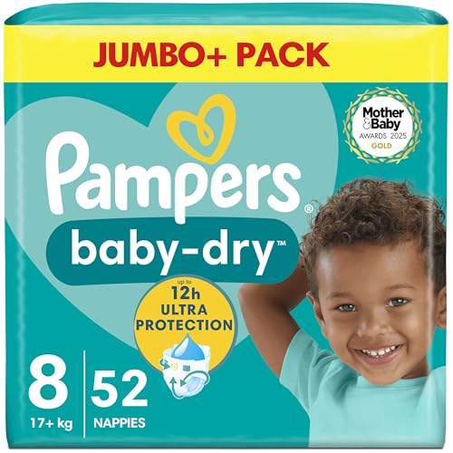 Pampers Baby-Dry Size 8, 52 Nappies, 17kg+, Jumbo+ Pack
