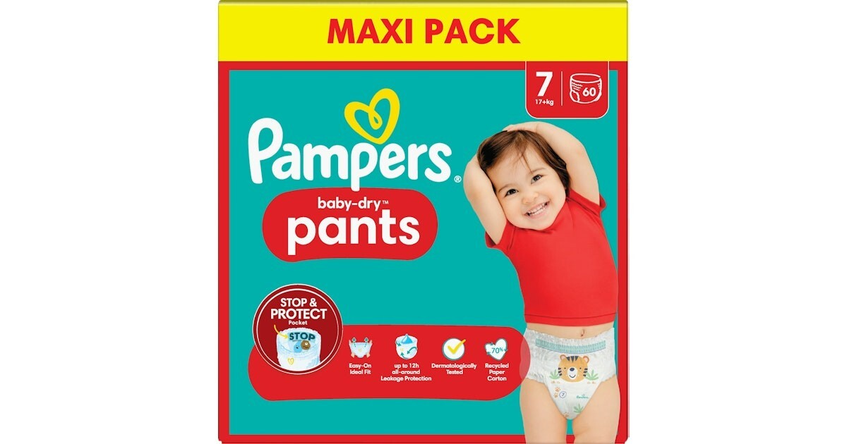 Pampers Baby-Dry Nappy Pants Size 7, 126 Nappies, 15kg+, Monthly Pack, 360° Fit To Help Prevent Gaps And Leaks