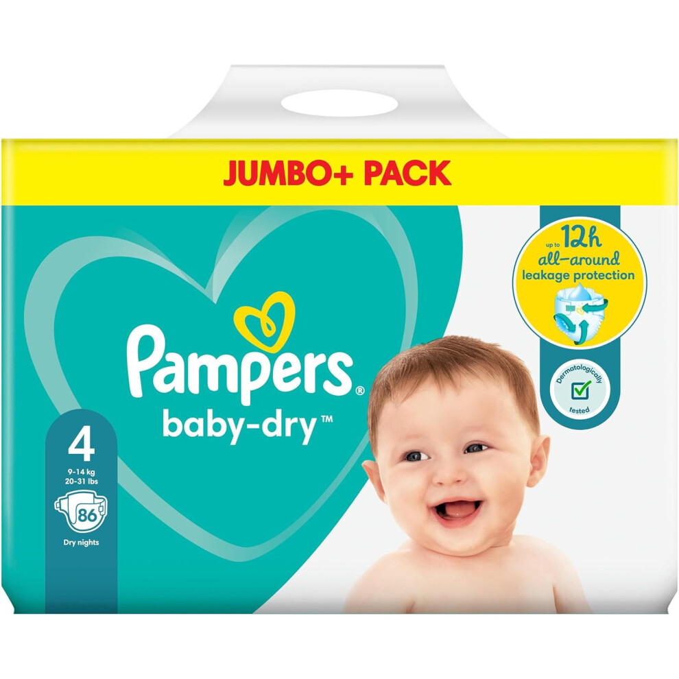 Pampers Baby-Dry Size 4, 84 Nappies, 9kg - 14kg, Jumbo+ Pack