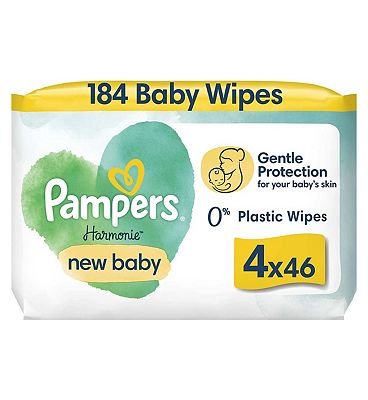 Pampers Harmonie New Baby Wipes Plastic Free 4 Packs = 184 Wet