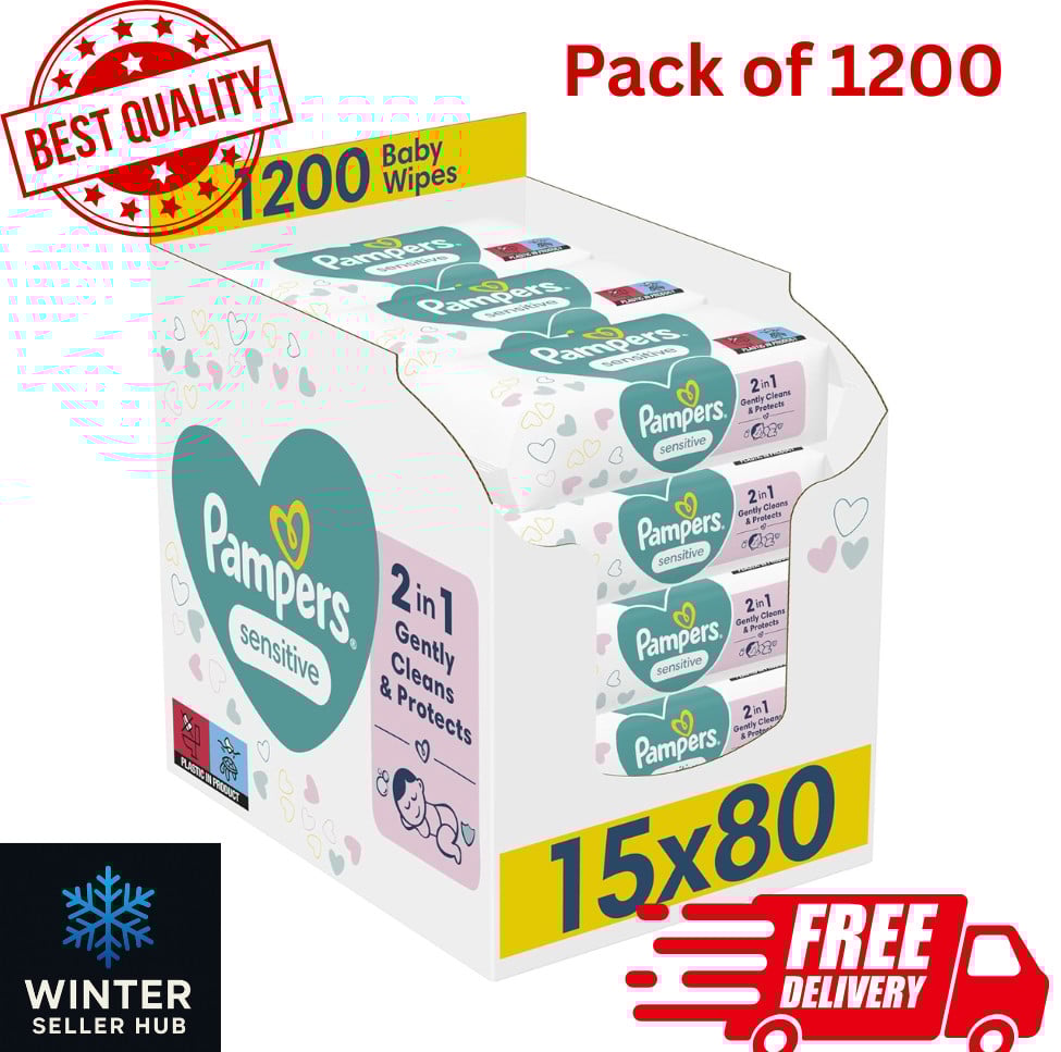 Pampers Sensitive Baby Wipes 15 Packs of 80 = 1200 Baby Wet