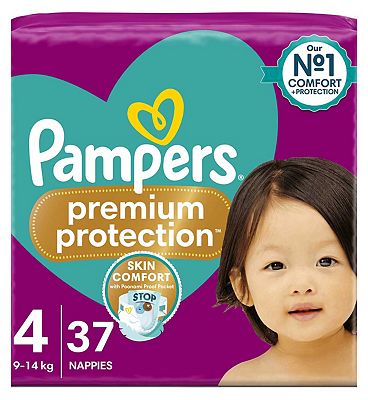 Pampers Premium Protection Size 4, 37 Nappies, 9kg - 14kg, Essential Pack