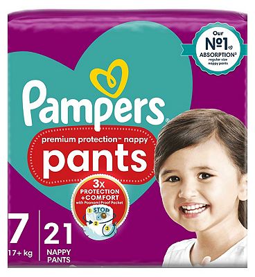 Pampers Premium Protection Nappy Pants Size 7, 21 Nappies, 17kg+, Essential Pack