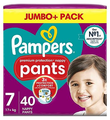 Pampers Premium Protection Nappy Pants Size 7, 40 Nappies, 17kg+, Jumbo+ Pack