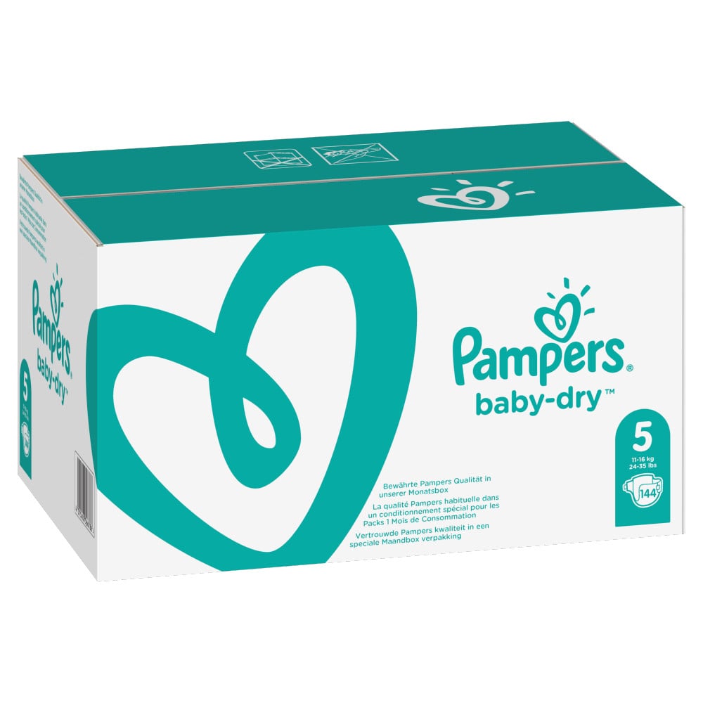 Pampers Baby Nappy Pants Size 5 (12-17 kg/26-38 Lb), Baby-Dry, 144 Nappies, MONTHLY SAVINGS PACK, With A Stop & Protect Pocket To Help Prevent Leaks