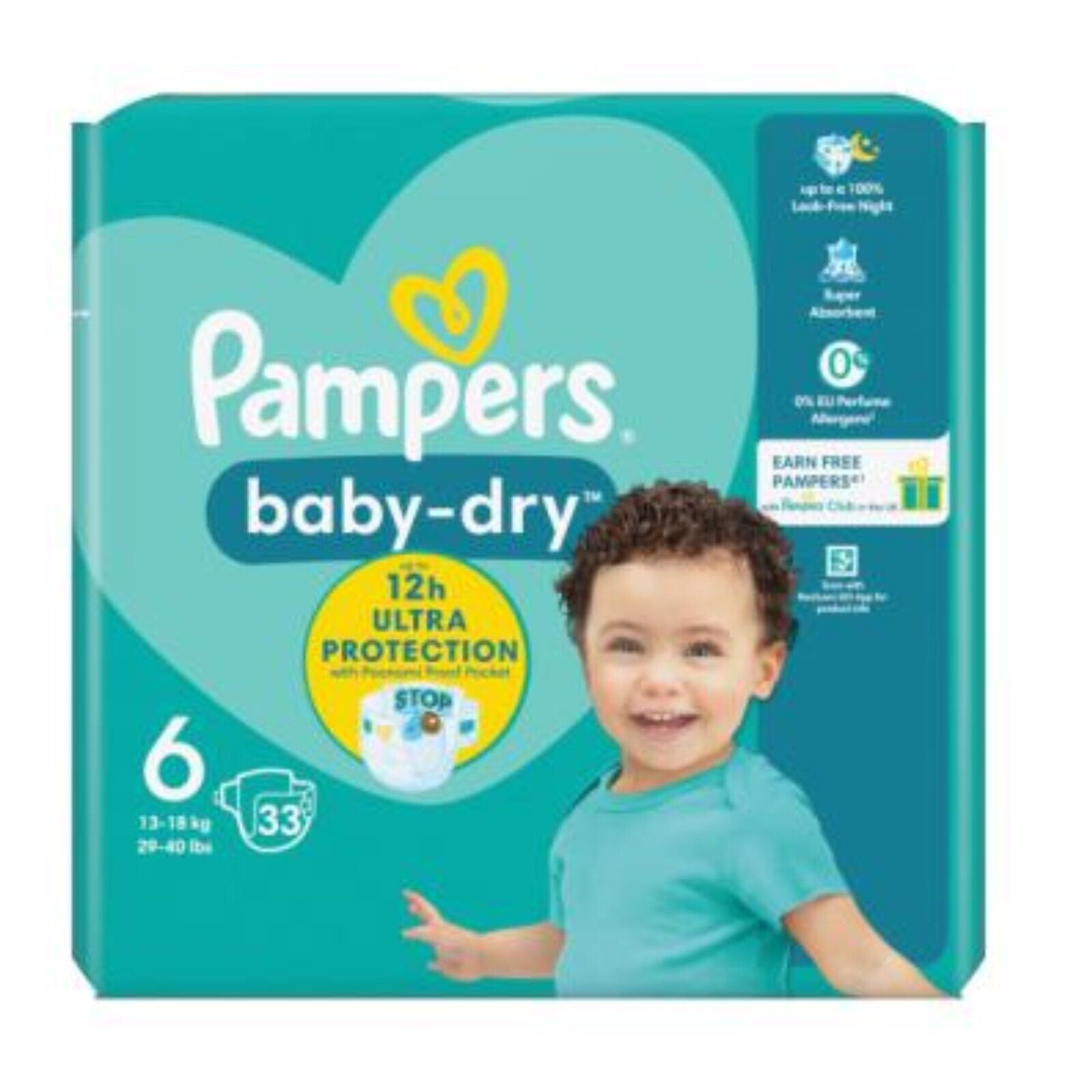 PAMPERS BABY Dry SIZE 6 BAG 33 NAPPIES 12 Hour Ultra Protection Nappy 13kg-18kg
