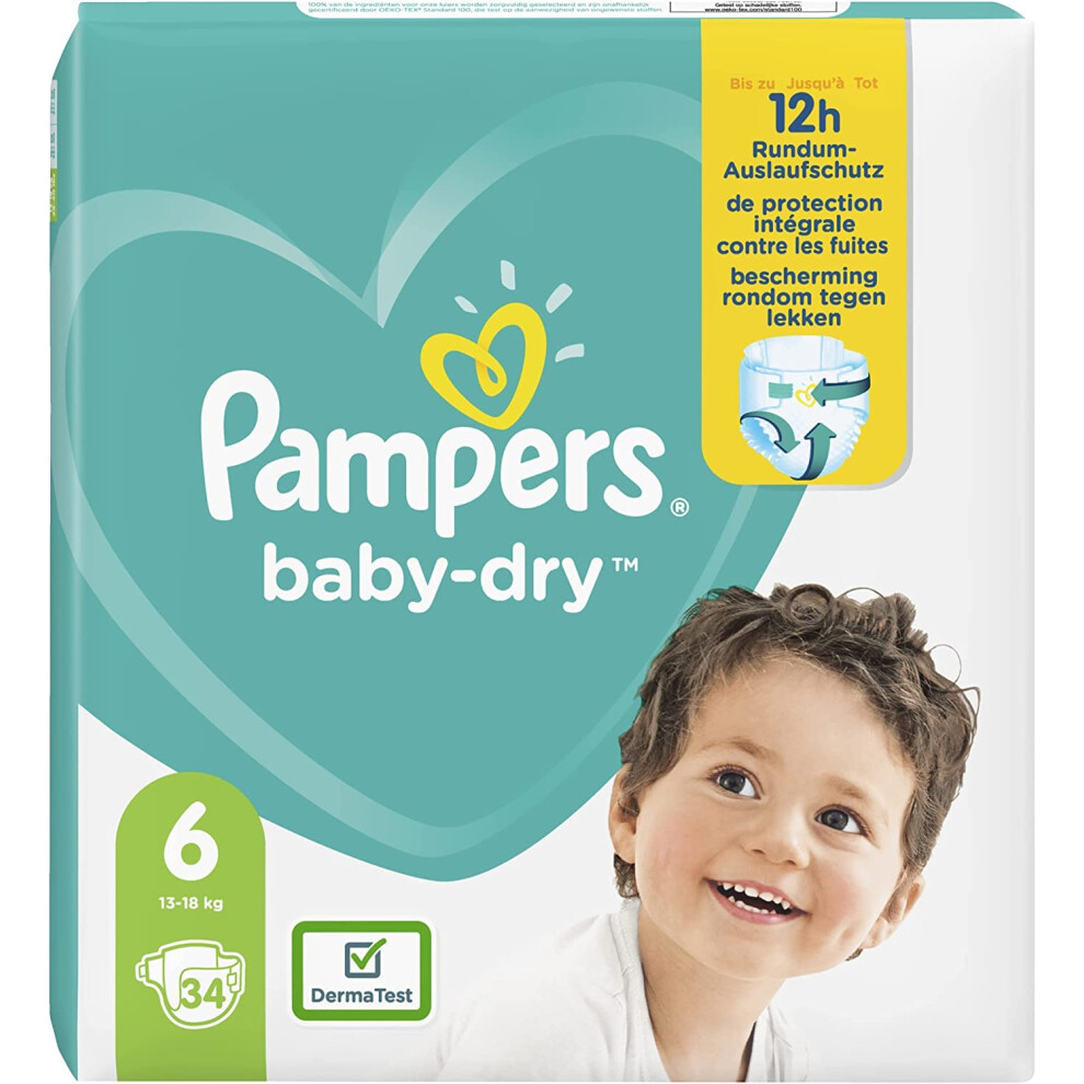 Pampers Baby Nappies Size 6 (13-18 kg/29-40 Lb), Baby-Dry, 124 Nappies