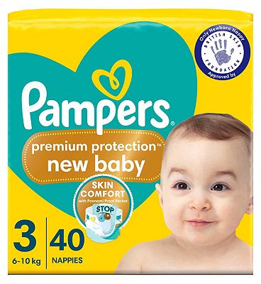 Pampers Premium Protection New Baby Size 3, 40 Nappies, 6kg - 10kg, Essential Pack