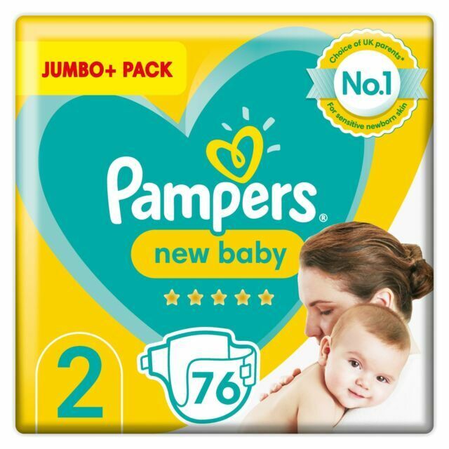 Pampers New Baby Size 2, 76 Newborn Nappies, 4kg-8kg, Jumbo+ Pack