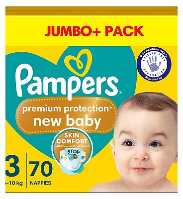 Pampers Premium Protection New Baby Size 3, 70 Nappies, 6kg - 10kg, Jumbo+ Pack