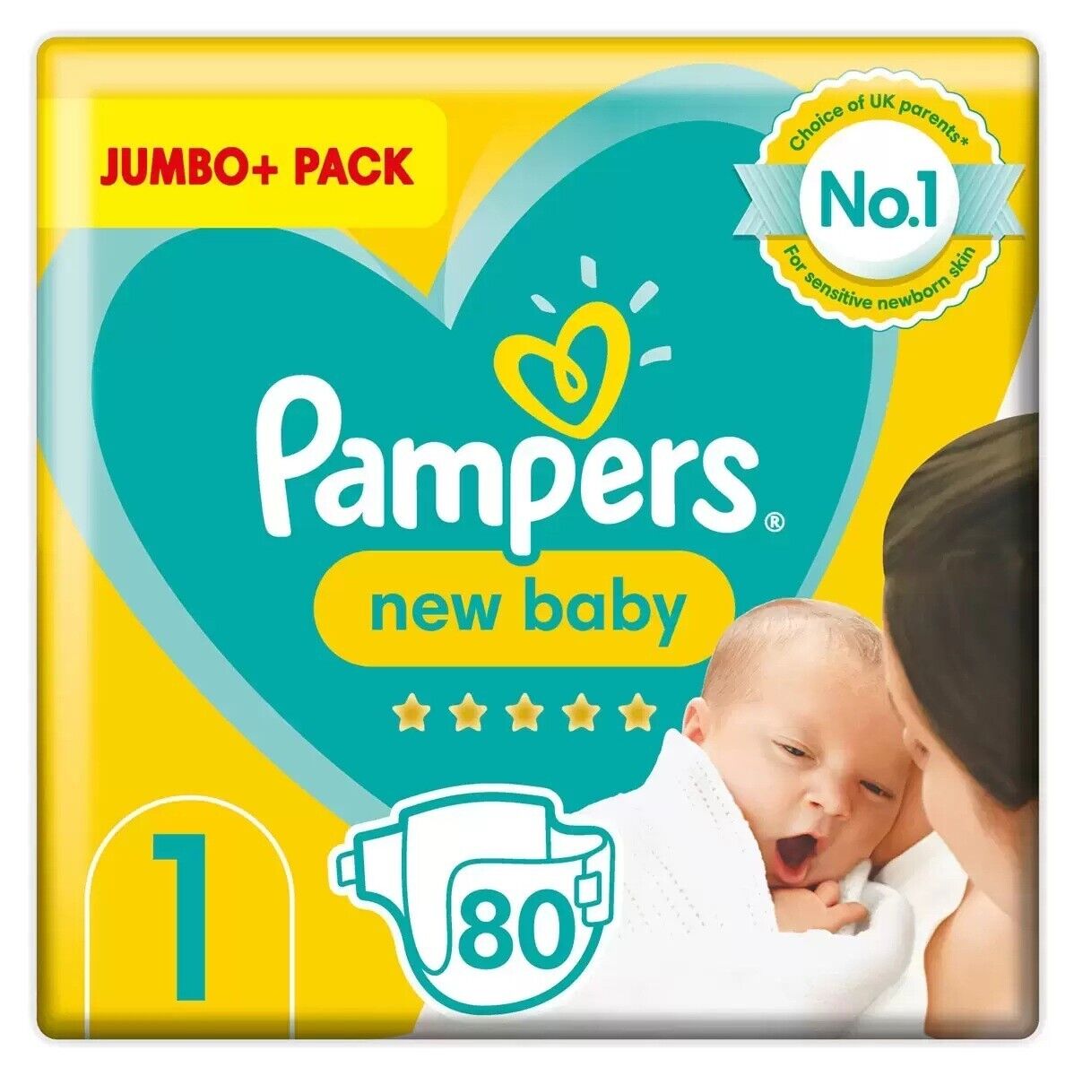 Pampers New Baby Size 1, 80 Newborn Nappies, 2kg-5kg, Jumbo+ Pack