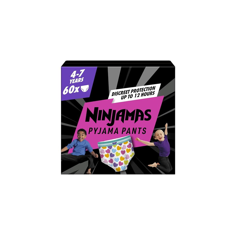 Pampers Ninjamas Pyjama Pants Unisex Hearts, 4-7 Years, 60 Pyjama Pants, 17kg - 30kg, All-Night Leak Protection