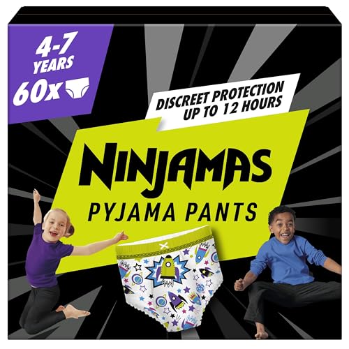 Pampers Ninjamas Pyjama Pants Unisex Spaceships, 4-7 Years, 60 Pyjama Pants, 17kg - 30kg, All-Night Leak Protection
