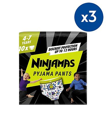 Pampers Ninjamas Bedwetting Pyjama Pants Boys x10 4-7 Years x3 Bundle