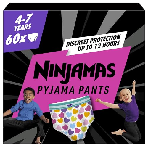 Pampers Ninjamas Pyjama Pants Unisex Hearts, 4-7 Years, 60 Pyjama Pants, 17kg - 30kg, All-Night Leak Protection