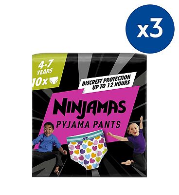 Pampers Ninjamas Pyjama Pants 4 - 7 Years Unisex Heart Design 2 x 10 Pack