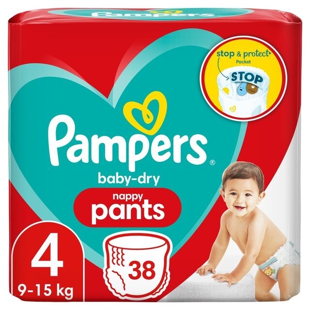 Pampers Baby-Dry Nappy Pants, Size 4 (9-15kg) Essential Pack 38 per pack